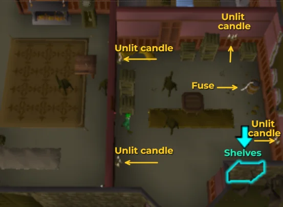 - Go to the room south of the cutscene location, enter the room below and use your knife on the fireplace. The path to the fireplace is shown in the image below.
