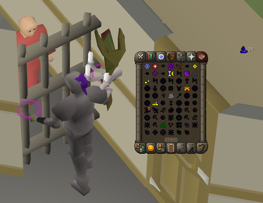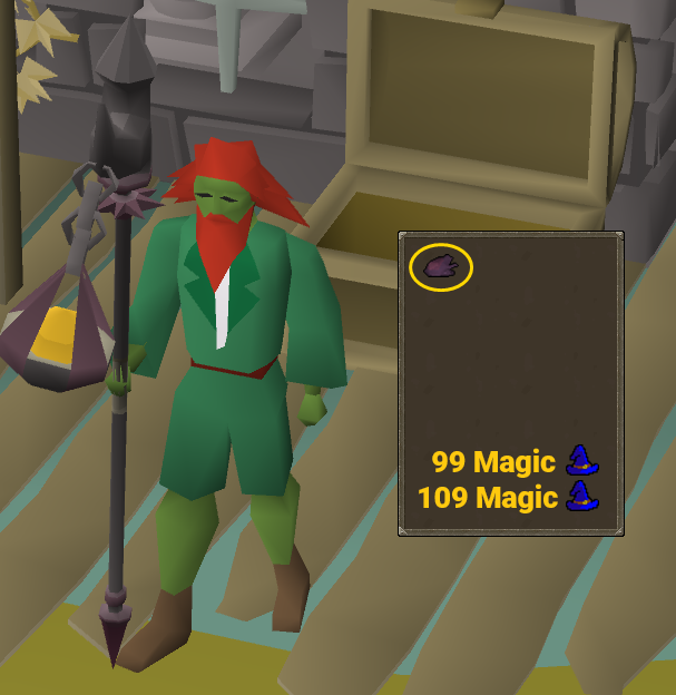 The account already has 99 Magic, the highest possible level in the game, right? This can get even better. Before you even have an eye on your target, go to your bank, withdraw your Imbued Heart, activate it, store it back in your bank, and you're ready to attack. The Imbue Heart has the biggest boost in the game, which will allow us to enjoy the privileges of having 100+ Magic while being around level 50-60 Combat.