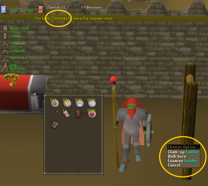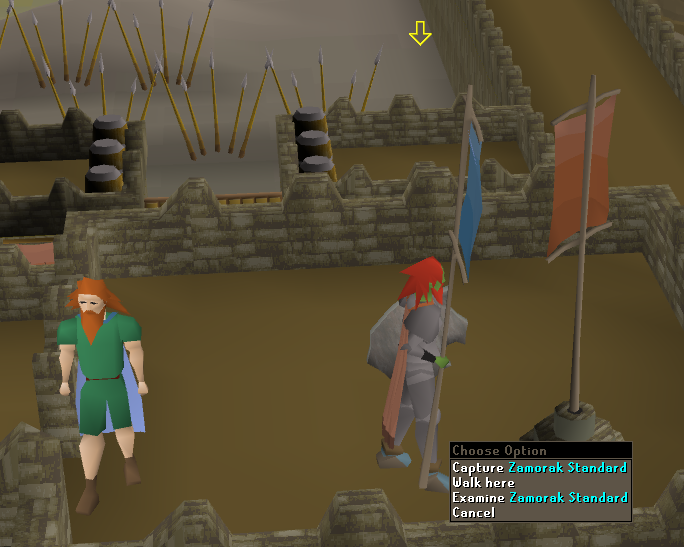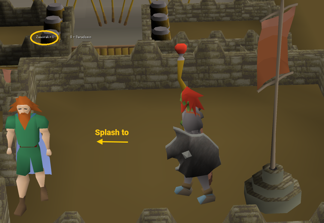 To splash successfully, your splashing account needs to wear armor that reduces your magic attack bonus to -64 or below. However, as many know, Castle Wars doesn't allow you to use a helm or cape, so we'll need some additional magic attack nerfs. This step is also optional, as you can choose not to splash and simply remain AFK once you secure the point for your winning team (more on that later).