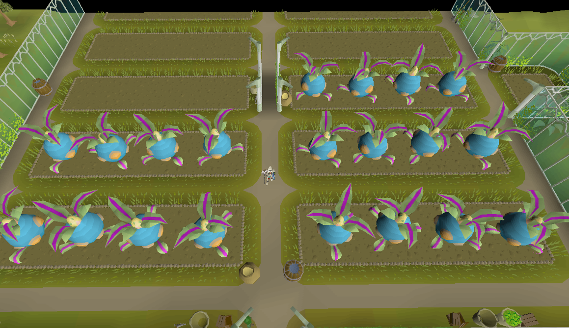 This method allows you to sow an extra row of seeds, increasing your experience and points per hour, but it requires more attention and the mandatory Humidify Spell, which requires the Lunar Spellbook, the Dream Mentor quest, and a Magic level of 68. It also requires Stamina Potions for those with low Agility.