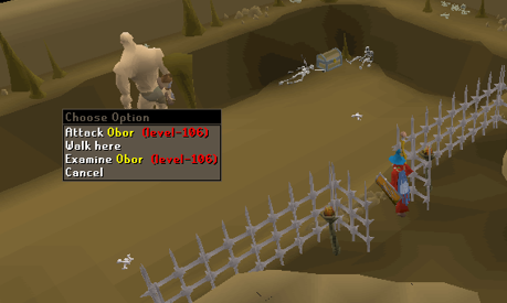 Since Obor is less resistant to magic attacks, using magic attacks is your best option, particularly if you are a beginner. Moreover, you should pray protect from missiles as they work really well, reducing Obor's damage by up to 50%.