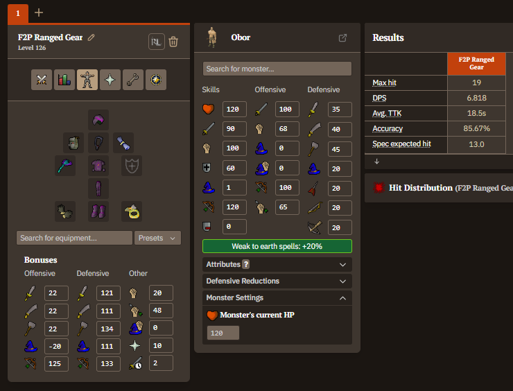 Obor can attack with both melee and ranged weapons, with a maximum hit count of 28 for ranged attacks and 22 for melee attacks. He also has the ability to knock you back while stunning you with his attacks. Obor has a combat level of 106 and a hitpoint of 120.