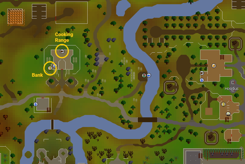 The Hosidius kitchen is useful for cooking because it provides a 5% increased chance of successfully cooking food when using the cooking ranges inside. It can be found in the Hosidius district just east of the Mess and contains a bank and 2 cooking ranges. The fastest method to get to the kitchen is by using Kharedst’s memoirs’ Lunch by the Lancalliums teleport (11s) or via Xeric’s talisman.