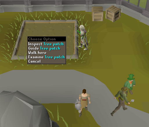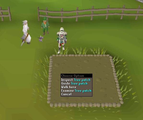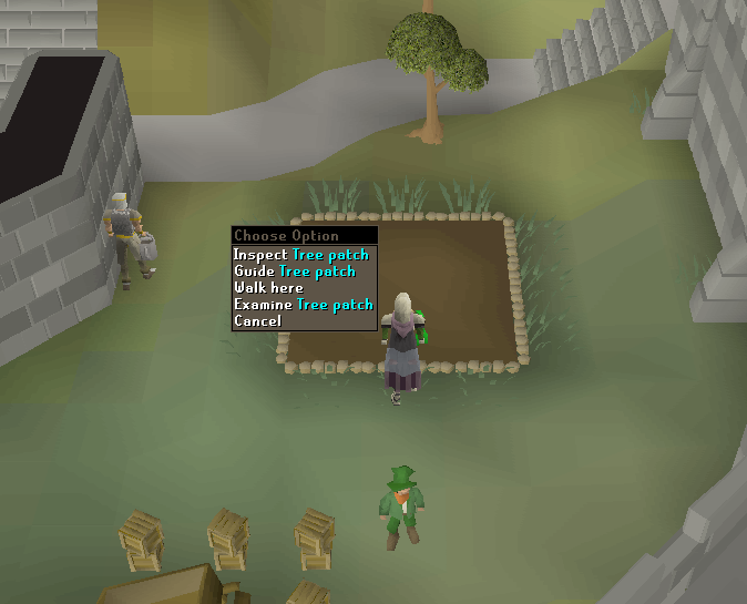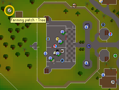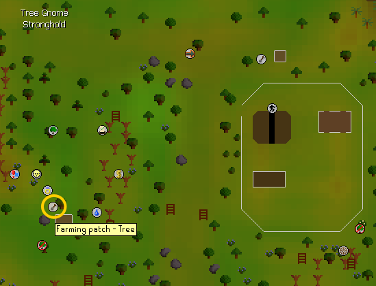 • Teleport to Tarverley and run east to the tree patch. Plant a tree here. Remember always pay the gardener at every farming patch.