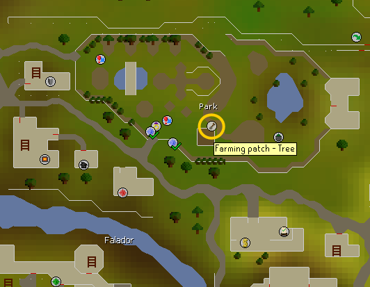 • Teleport to Falador Park with the ring of wealth. Plant a tree here