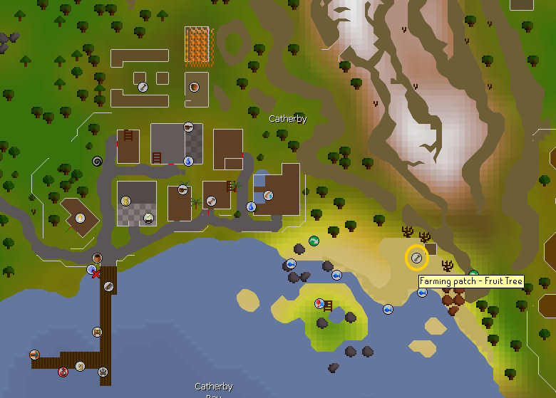 • Teleport to Catherby and run east of the fruit tree patch near the fishing spots, plant a tree here.