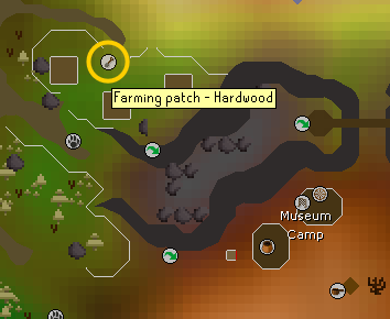 • Teleport to the Digsite. Run to the barge, quick-travel to Fossil Island, and run to the hardwood tree patches north. Plant hardwood here.