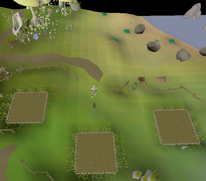 • Teleport to Lumbridge, exit the city through the Lumbridge Castle walls, and run north to the tree patch as shown below. Plant a tree