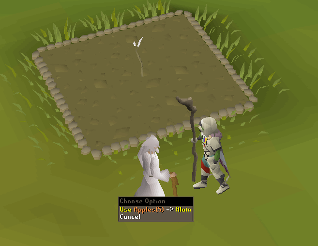 • Players are rewarded 22 farming XP for planting Apple seeds, which requires 9 sweetcorns for protection.