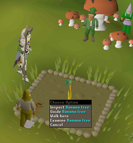 • 4 fruit trees sapplings - At level 35 farming, you should plant Banana seeds. There are also six fruit tree patches, but one is in the farming guild that requires 85 farming to access.