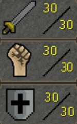 Switch between Attack → Strength → Defence as needed, but always train Attack first so you can unlock scimitars faster.